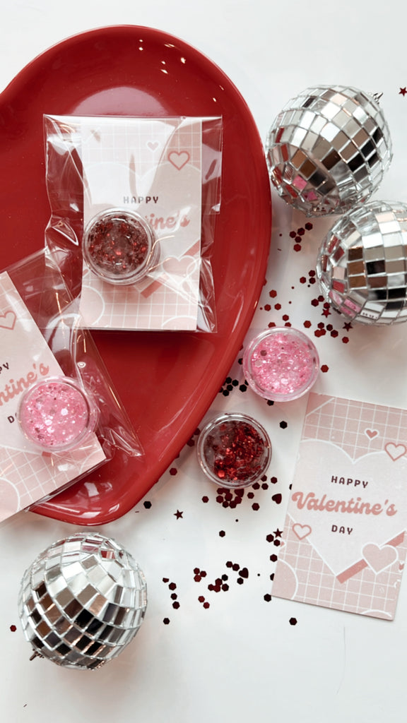 INCLUDES: VALENTINE CARD, GLITTER GEL - GOOD FOR 1-2 USES, AND CELLOPHANE BAG.
